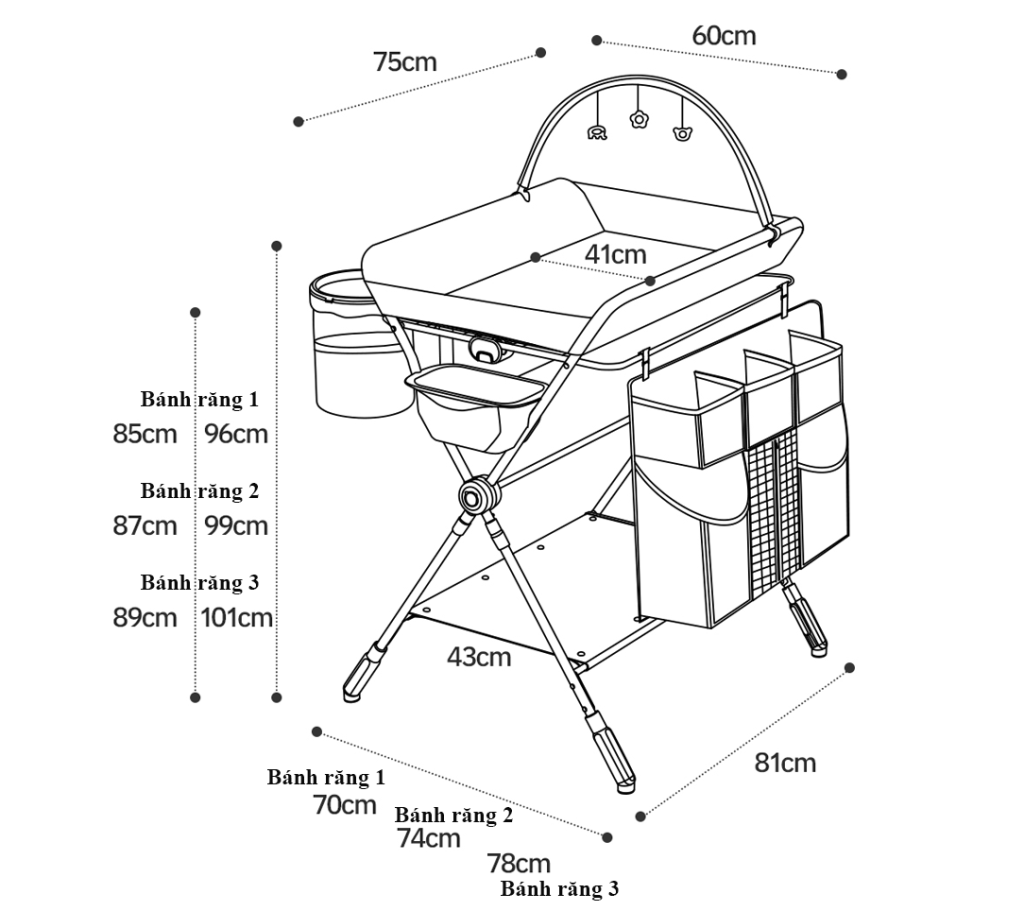 + Bàn thay đồ, thay tã cho em bé.