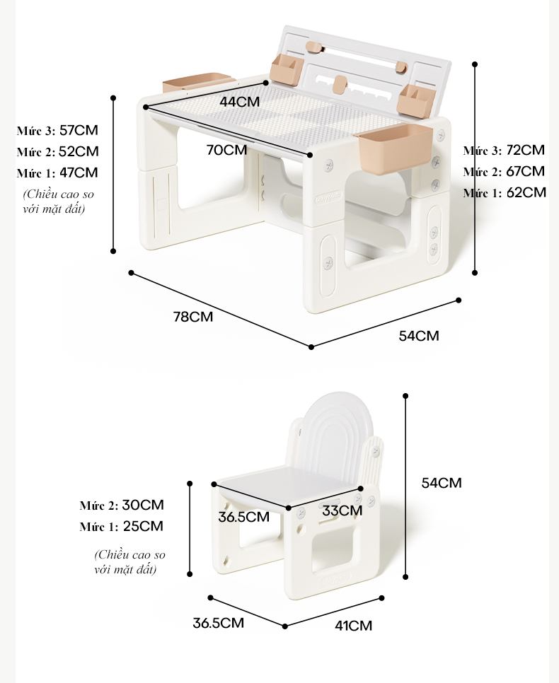 Bộ bảng vẽ, bàn lego kèm ghế ngồi cao cấp Babypods mẫu Kiddo (tùy chỉnh độ cao)