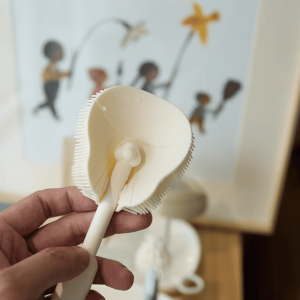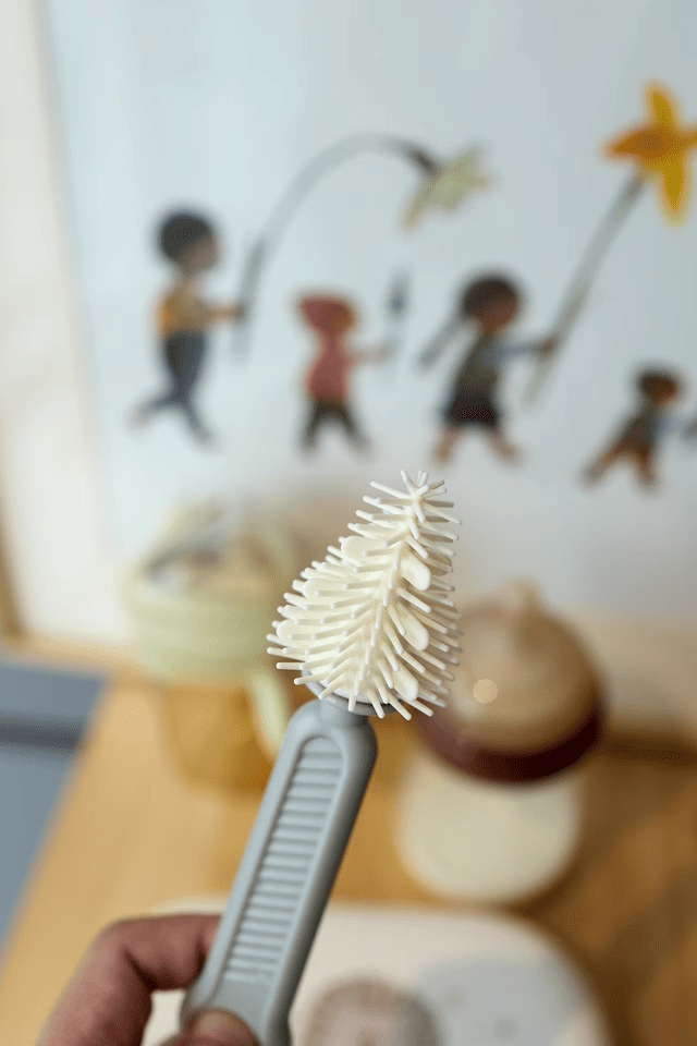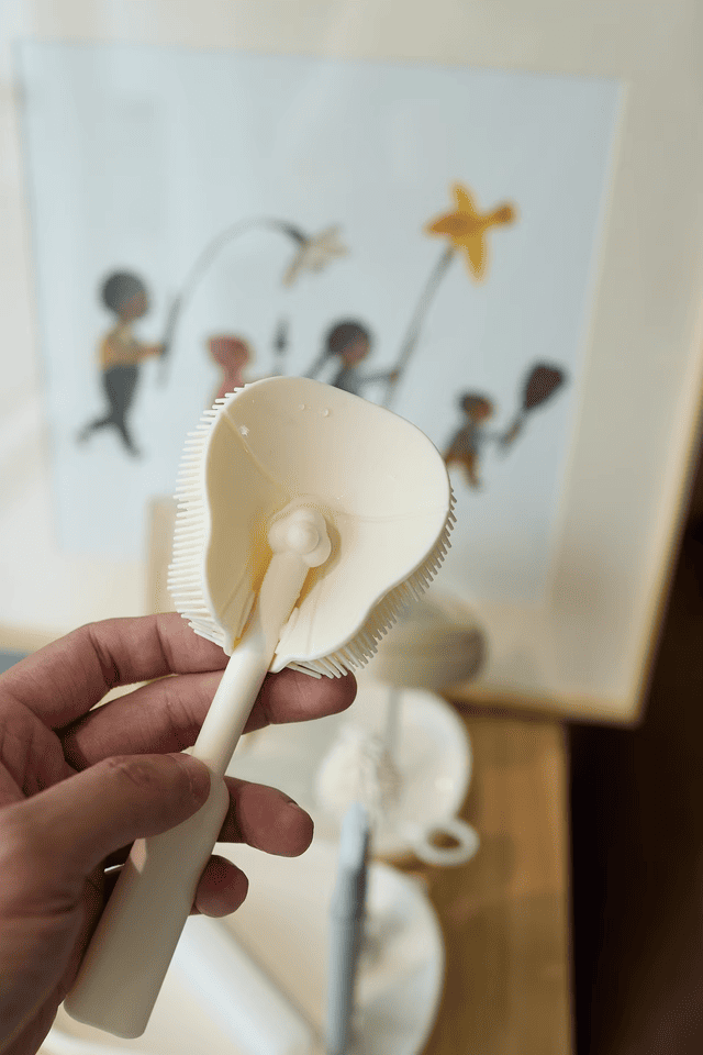 + Chổi rửa núm ti bằng silicone mềm mại giúp vệ sinh nhẹ nhàng, không làm xước hoặc biến dạng núm ti.