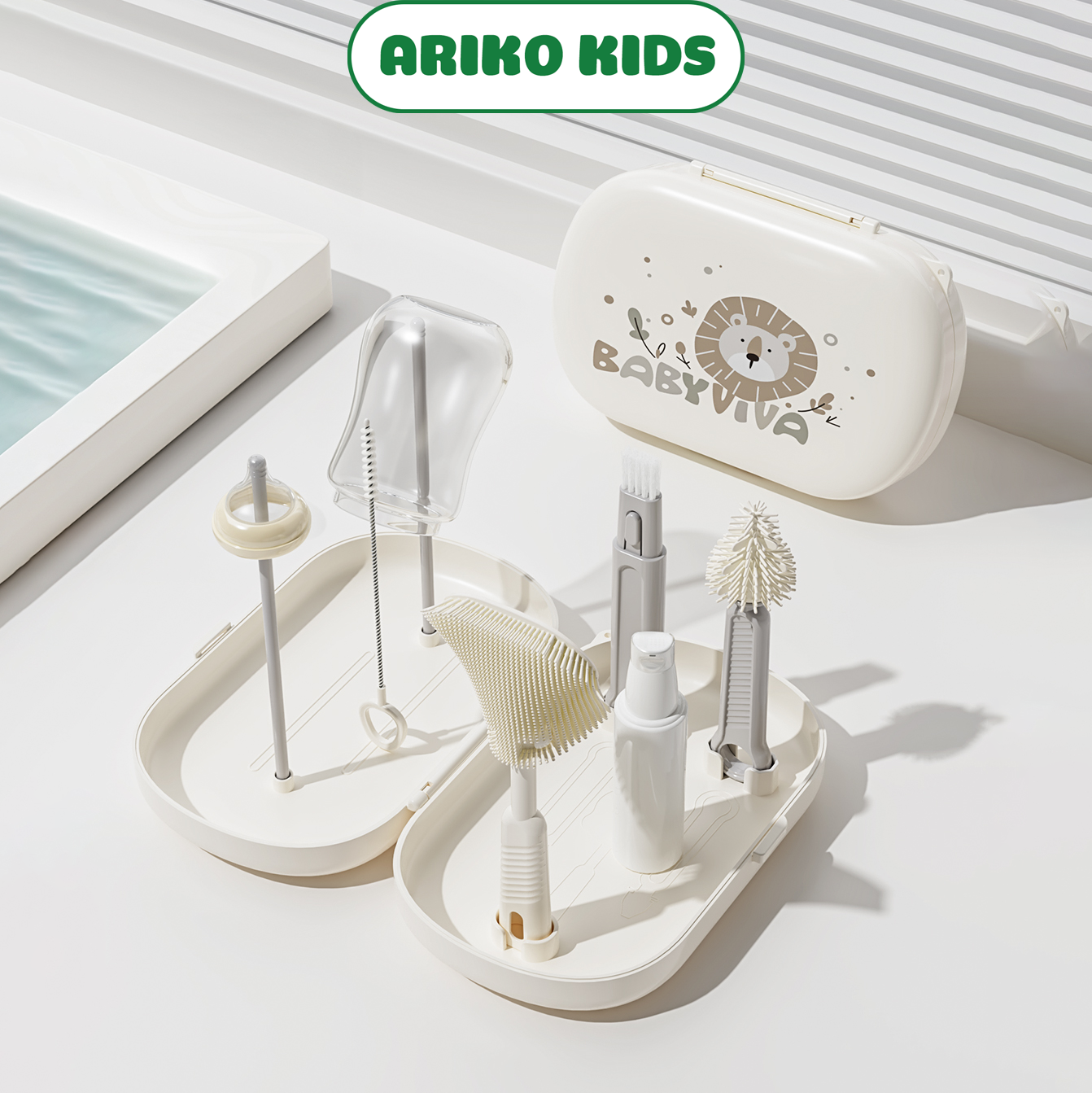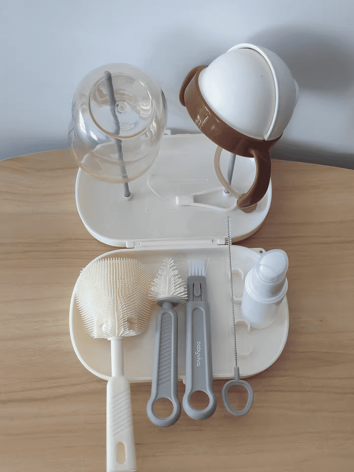 Bộ cọ rửa bình sữa tích hợp giá phơi bình sữa đơn giản kèm hộp đựng hiệu Babyviva