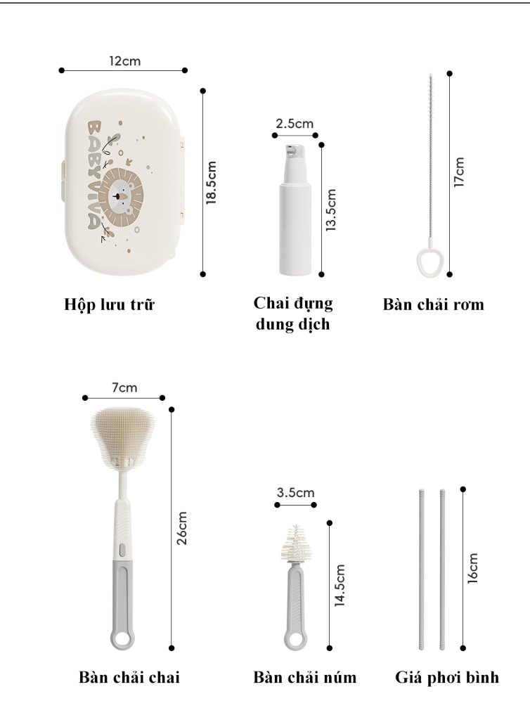| Tên sản phẩm | Bộ cọ rửa bình sữa kèm hộp đựng |