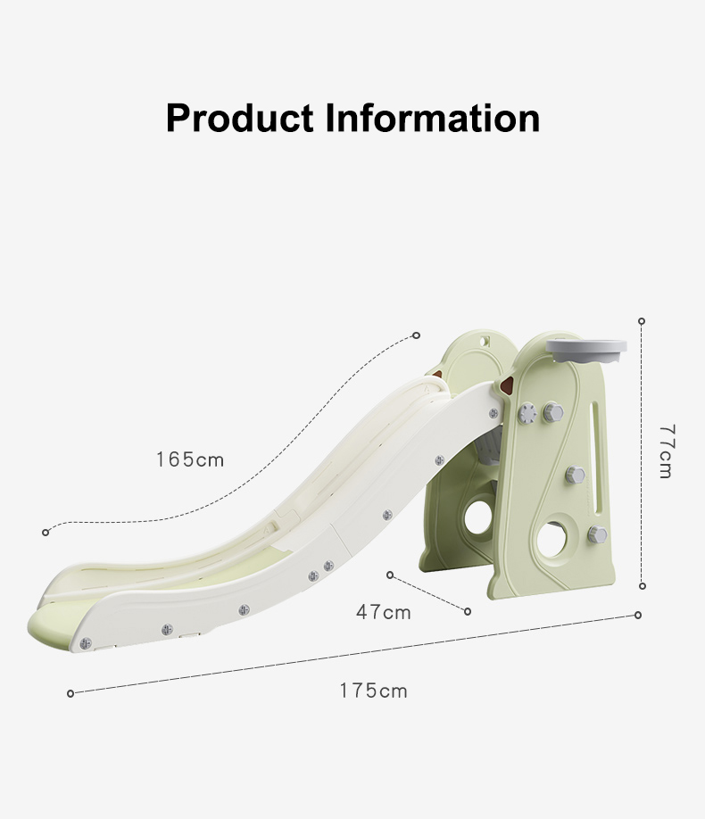 + Cải tiến hơn so với các thiết kế cũ bằng máng trượt dài 165cm, lòng trượt rộng rãi, ba mẹ có thể chơi cùng bé vì chịu được tải trọng lớn đến khoảng 60kg.
