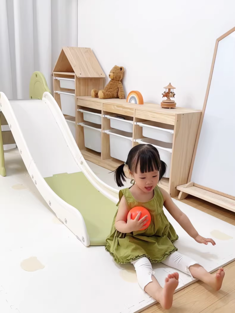 + Cầu trượt được gấp gọn tiện lợi sau khi chơi xong, giúp ba mẹ tiết kiệm được không gian phòng cho bé.