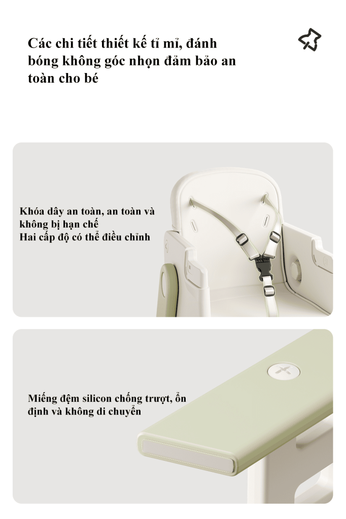 + Thiết kế thông minh, không chiếm nhiều không gian và phù hợp với nhiều loại bàn, không chỉ bàn ăn mà có thể dùng với bàn học của trẻ sau này.