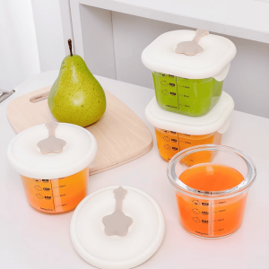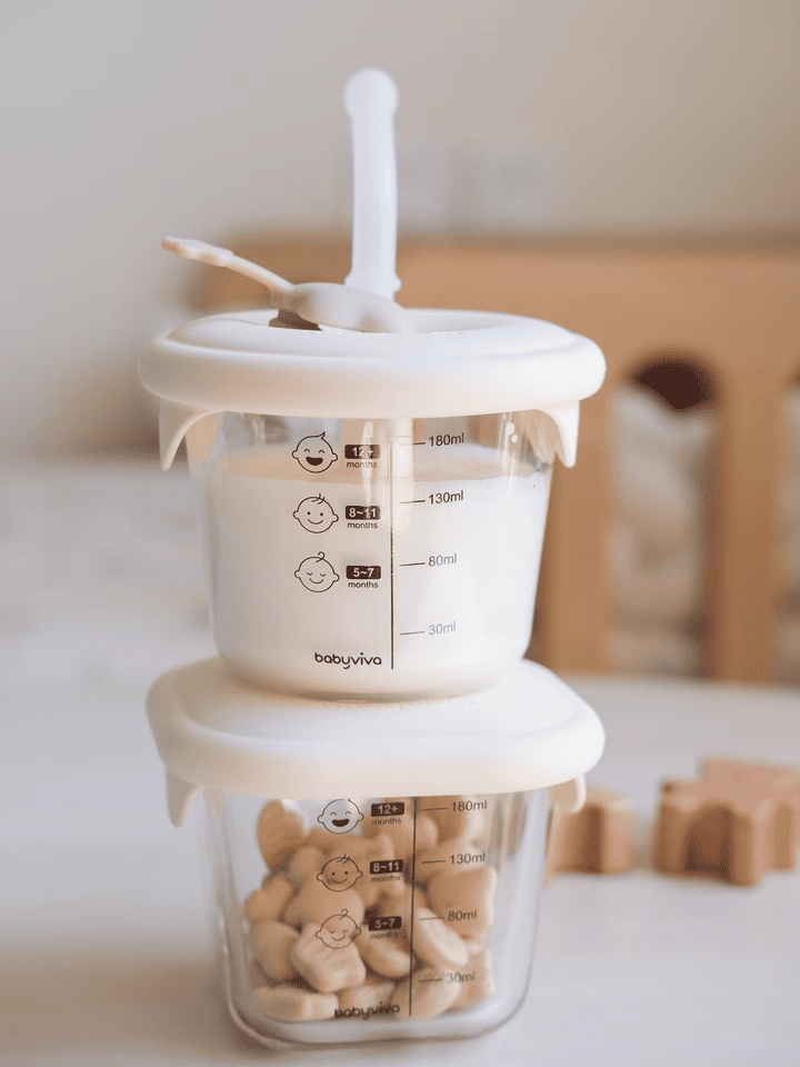 HỘP TRỮ ĐÔNG THỨC ĂN DẶM CHO BÉ, CỐC NẤU CHÁO CÓ CHIA VẠCH ML BẰNG THỦY TINH BOROSILICATE CAO CẤP BABYVIVA (TẶNG KÈM ỐNG HÚT SILICONE CAO CẤP)
