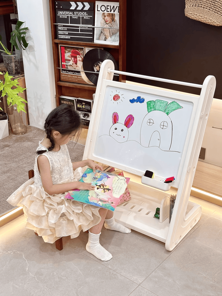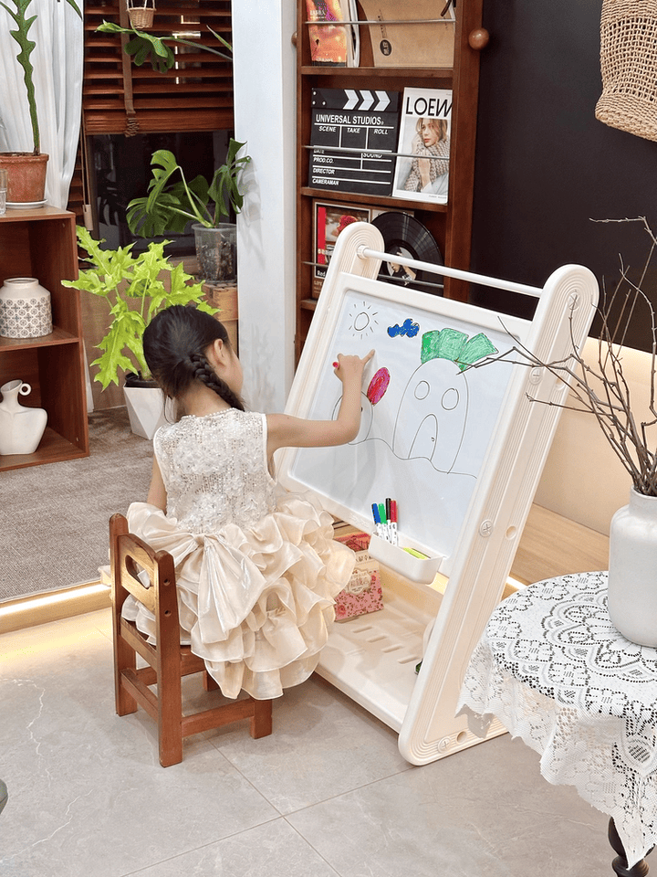 + Bảng vẽ nam châm ba mẹ có thể sử dụng các ô số từ để rèn luyện tư duy cho trẻ.
