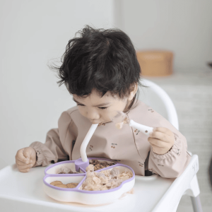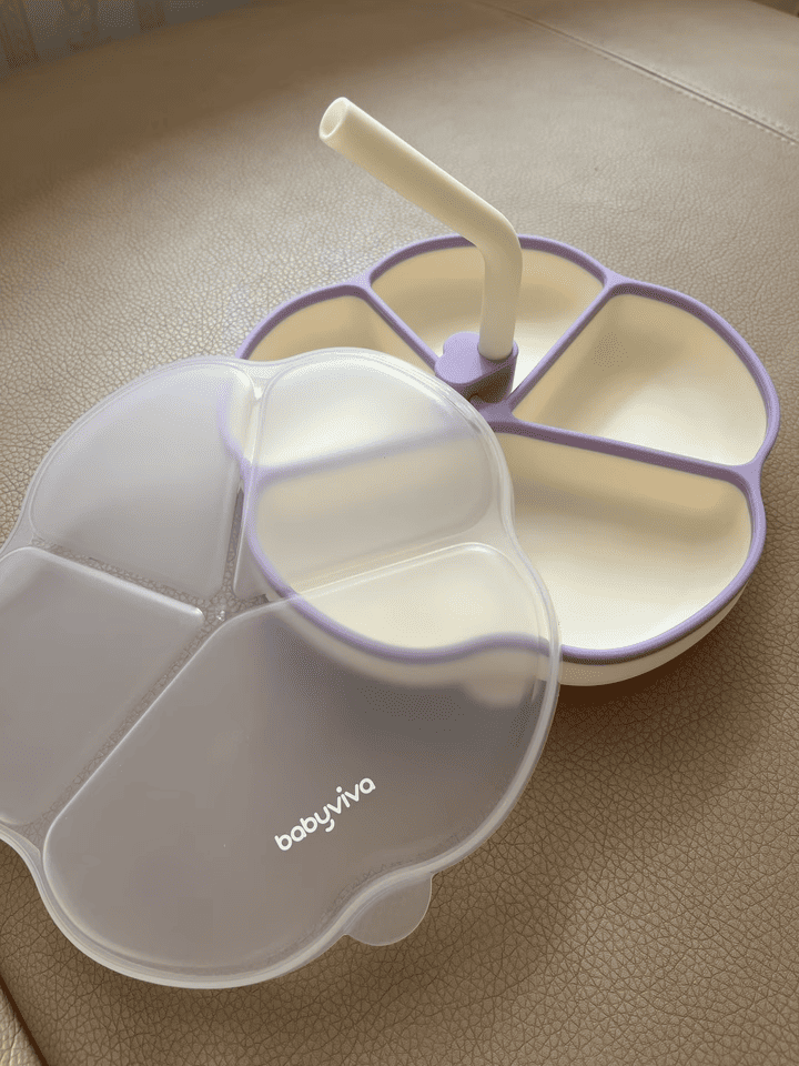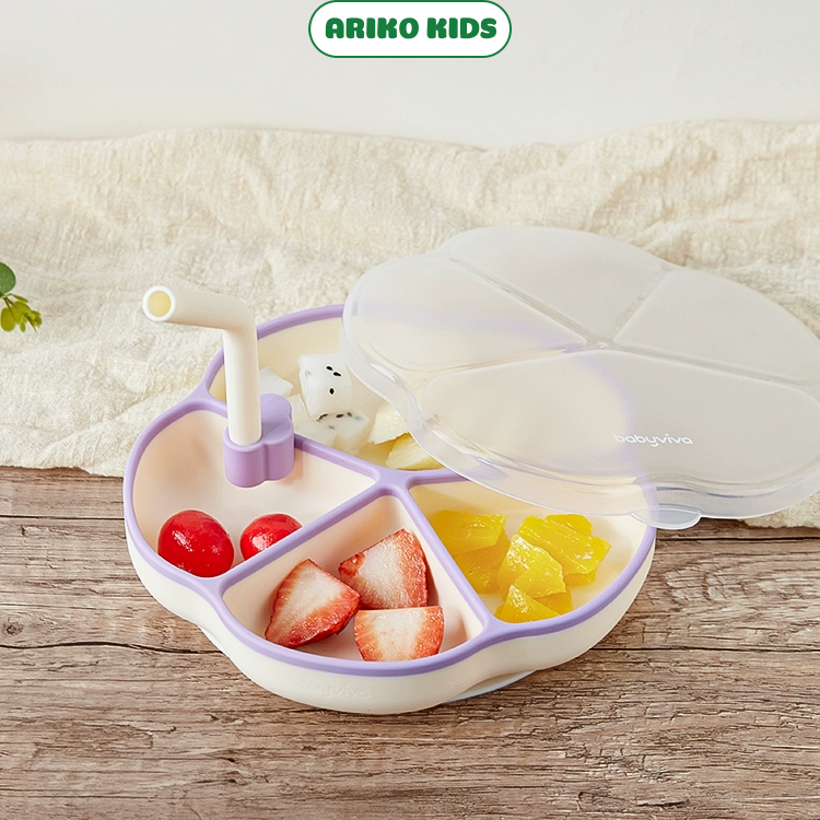 Khay ăn dặm silicone cao cấp cho bé kèm ống hút súp và nắp đậy chịu nhiệt cao cấp Babyviva
