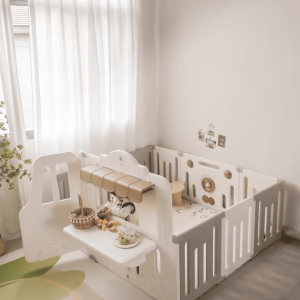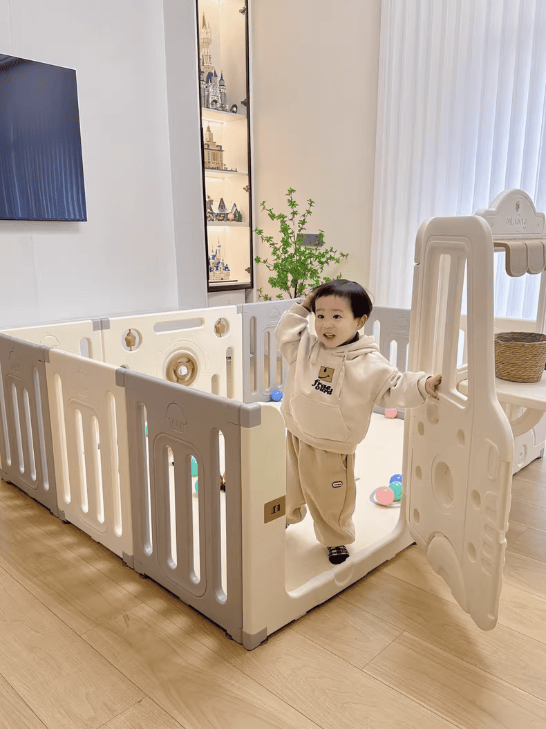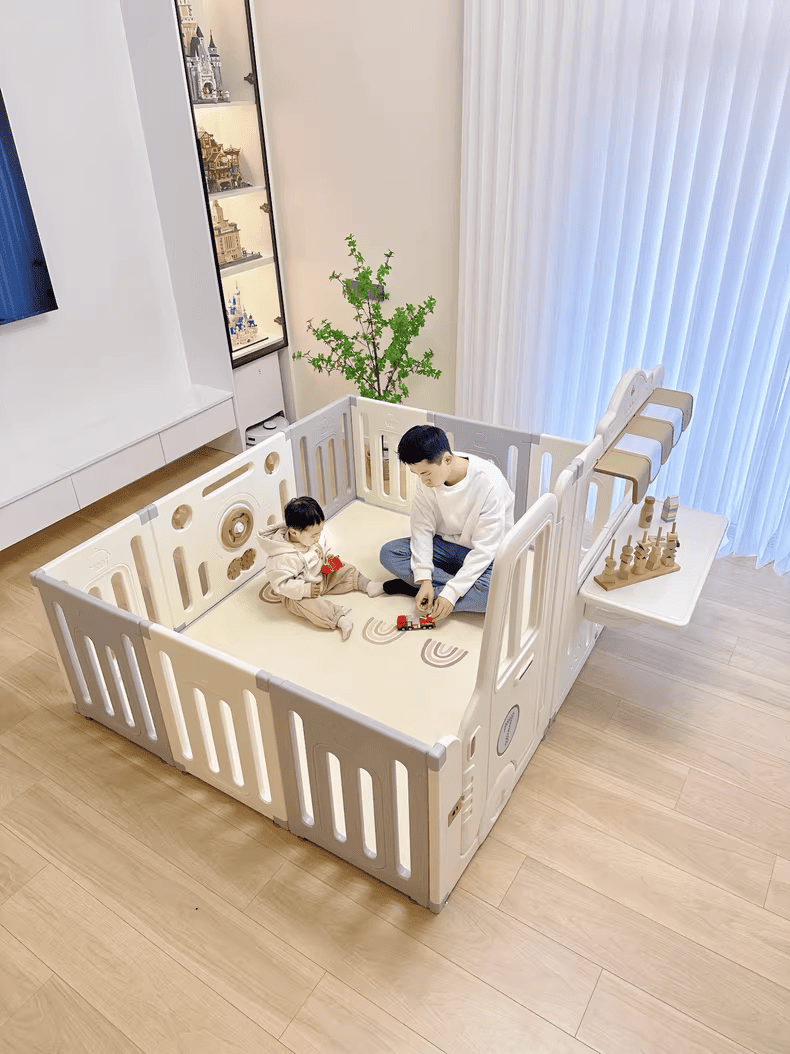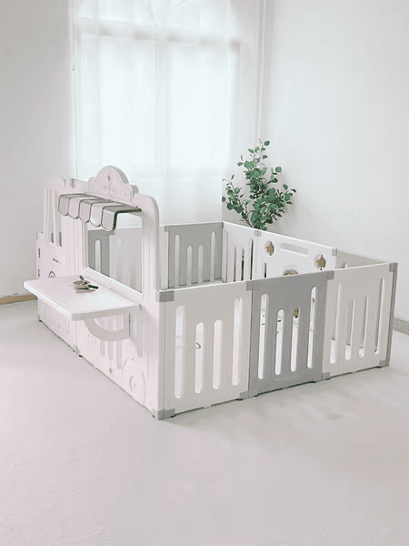 + Thành quây cao 63cm, rộng 32mm, gia cố bằng các khớp nối và khóa thông minh vô cùng kiên cố.