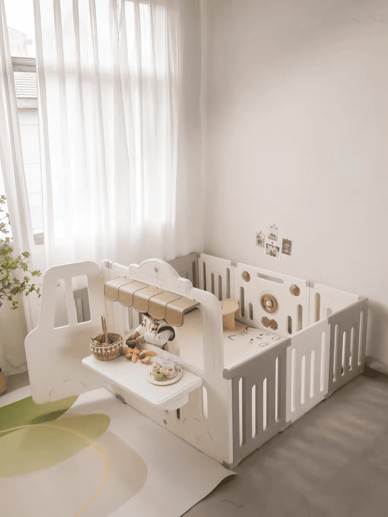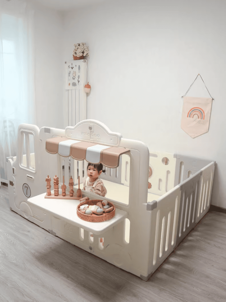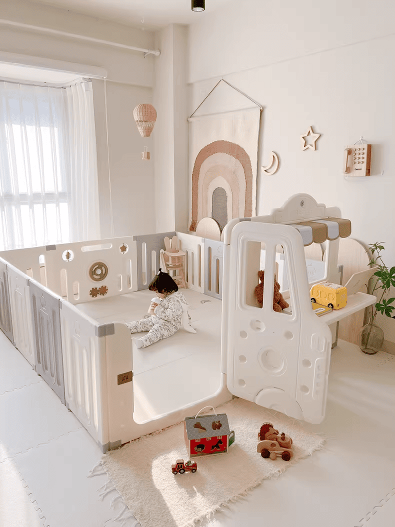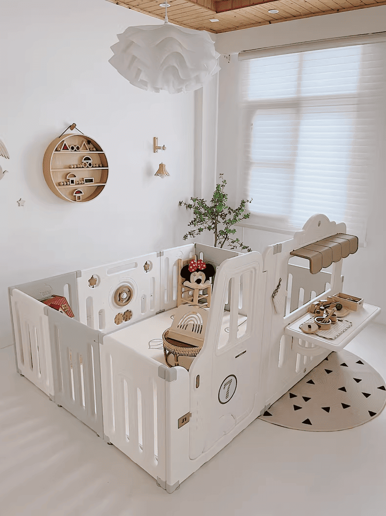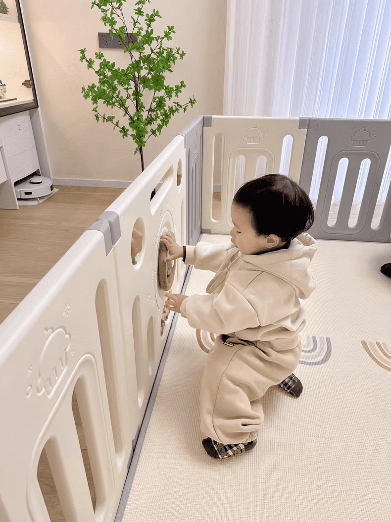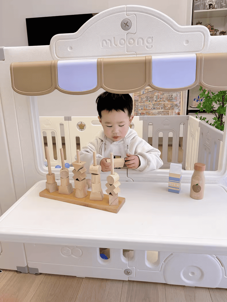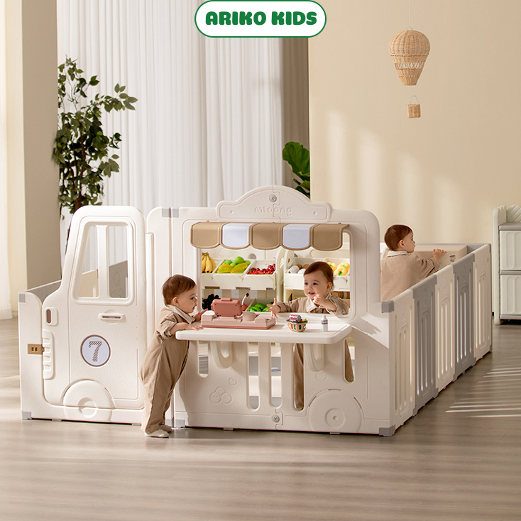 + Đi kèm là đồ chơi thành quây, giúp phát triển trí tò mò của các bé nhỏ.