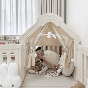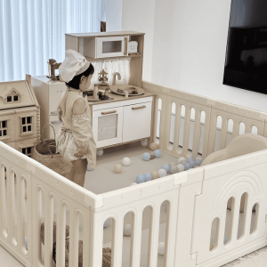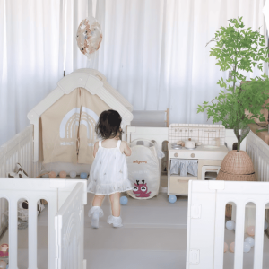 + Quây được thiết kế với màu trắng để giúp ba mẹ dễ dàng decor, trang trí phòng bé. Đặc biết với phiên bản nâng cấp có thêm thiết kế hình ngôi nhà xinh xắn, giúp tạo nên khu vui chơi cho bé cực kỳ thú vị.
