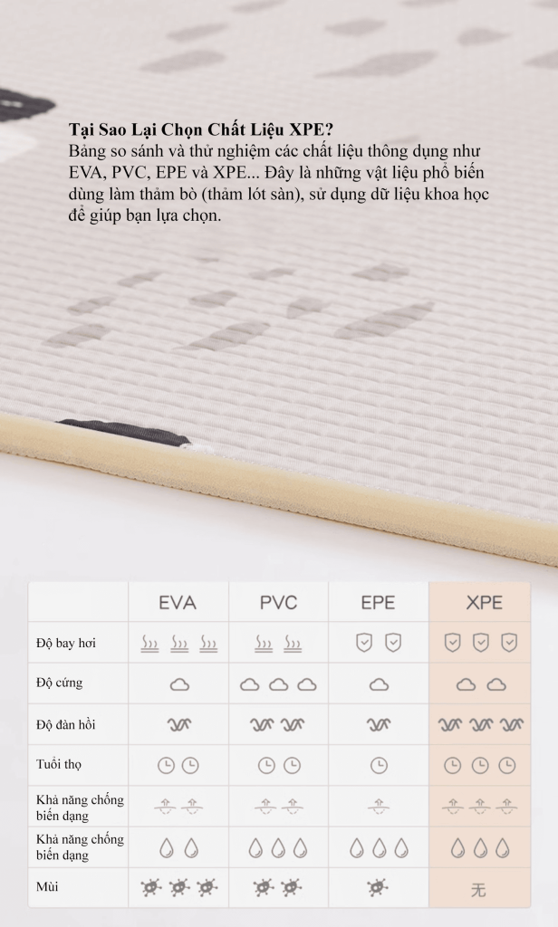 * Trang bị lõi XPE cao cấp với các tính năng vượt trội hơn so với thảm EPE: