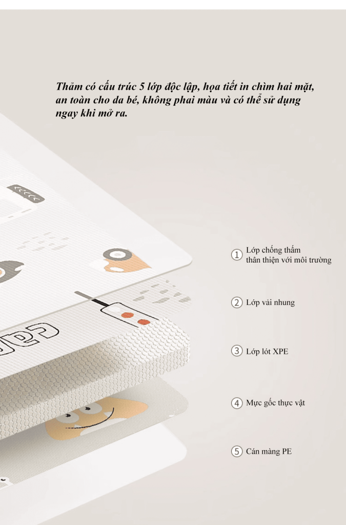 + Độ dày 2cm và độ đàn hồi cao, không gây tổn thương cho bé khi bị té ngã.