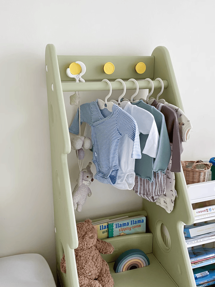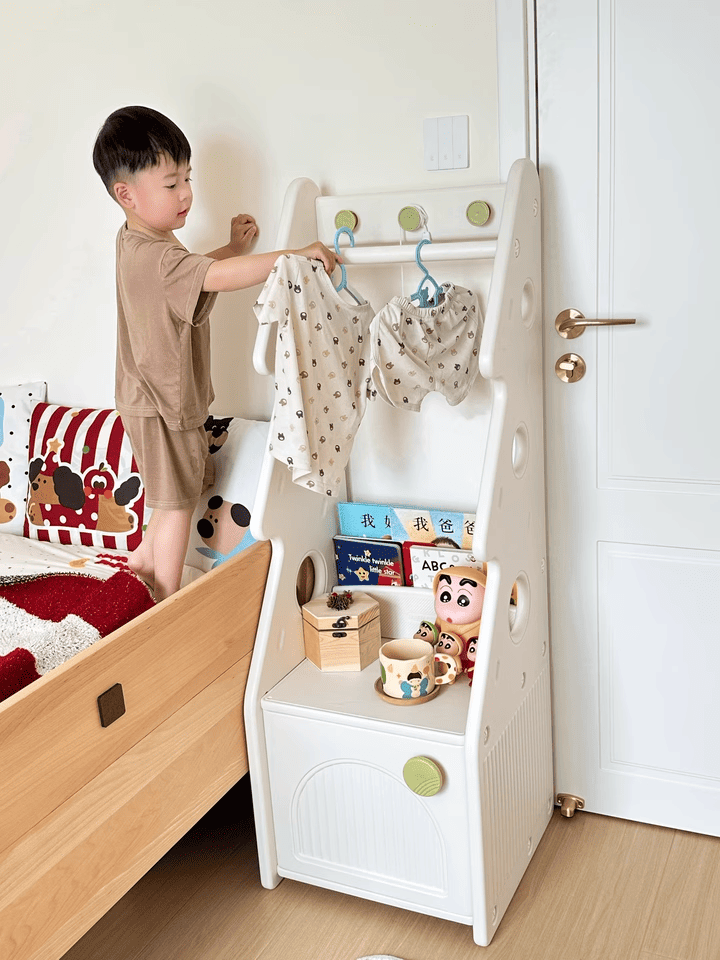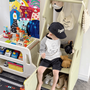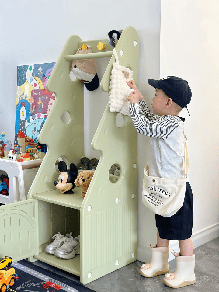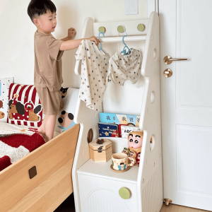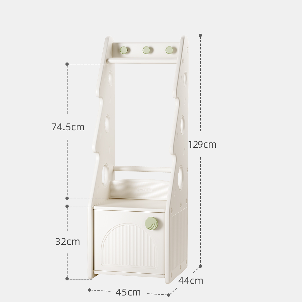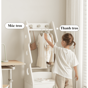 + Thanh treo đồ: Thiết kế với độ cao vừa phải, khoa học, dùng để treo quần áo, túi xách bé có thể thao tác treo và lấy dễ dàng.