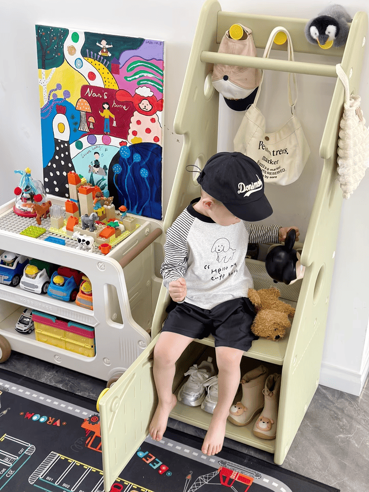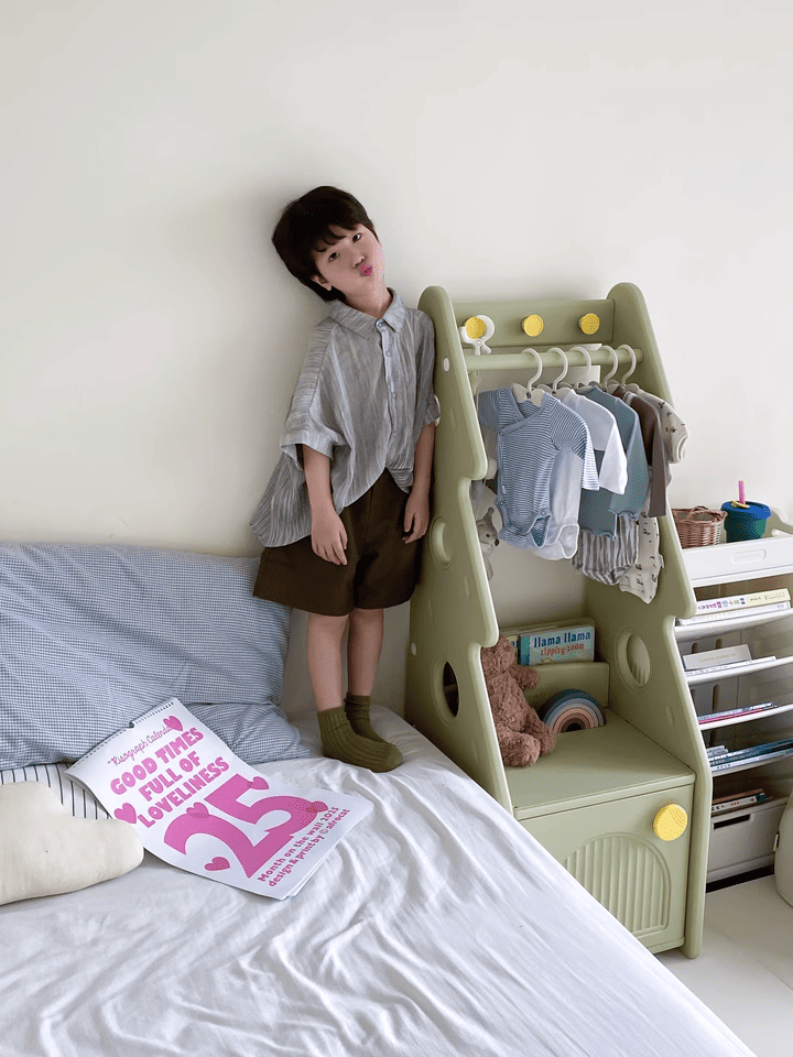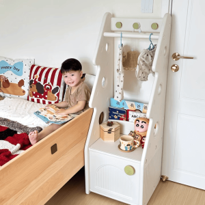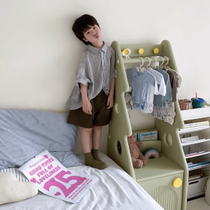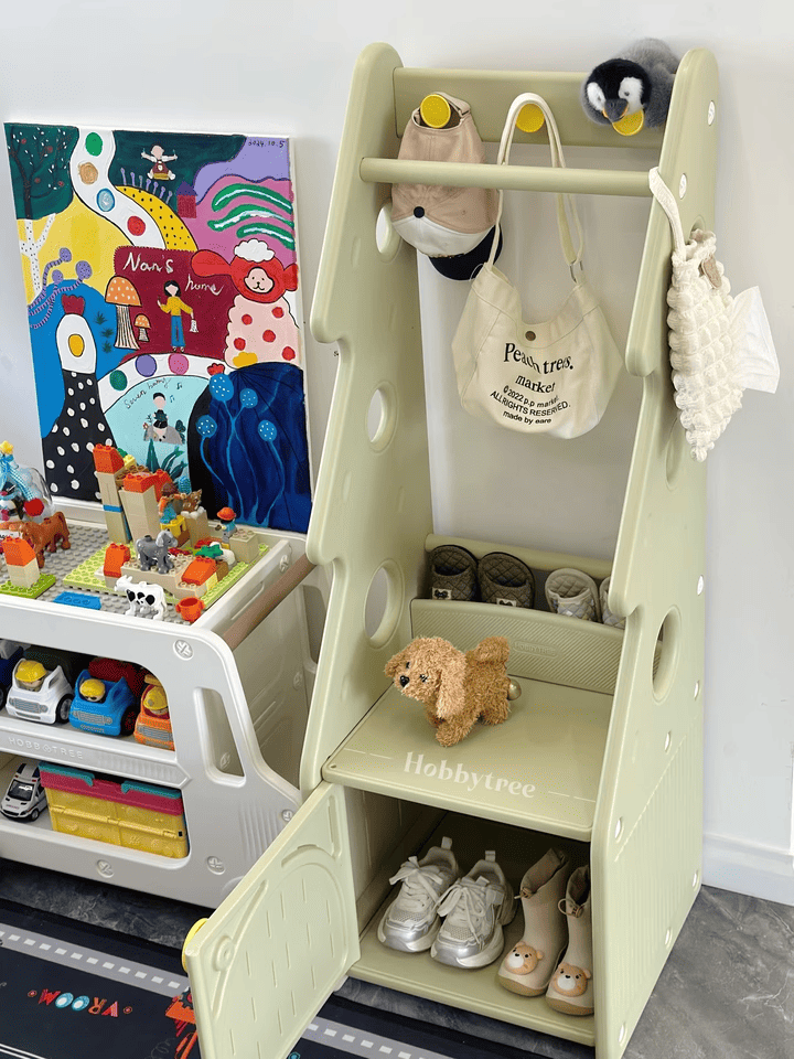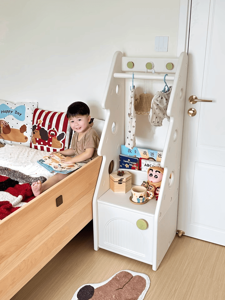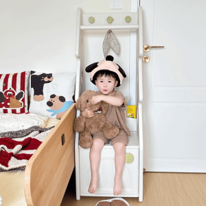 + Thanh treo đồ: Thiết kế với độ cao vừa phải, khoa học, dùng để treo quần áo, túi xách bé có thể thao tác treo và lấy dễ dàng.