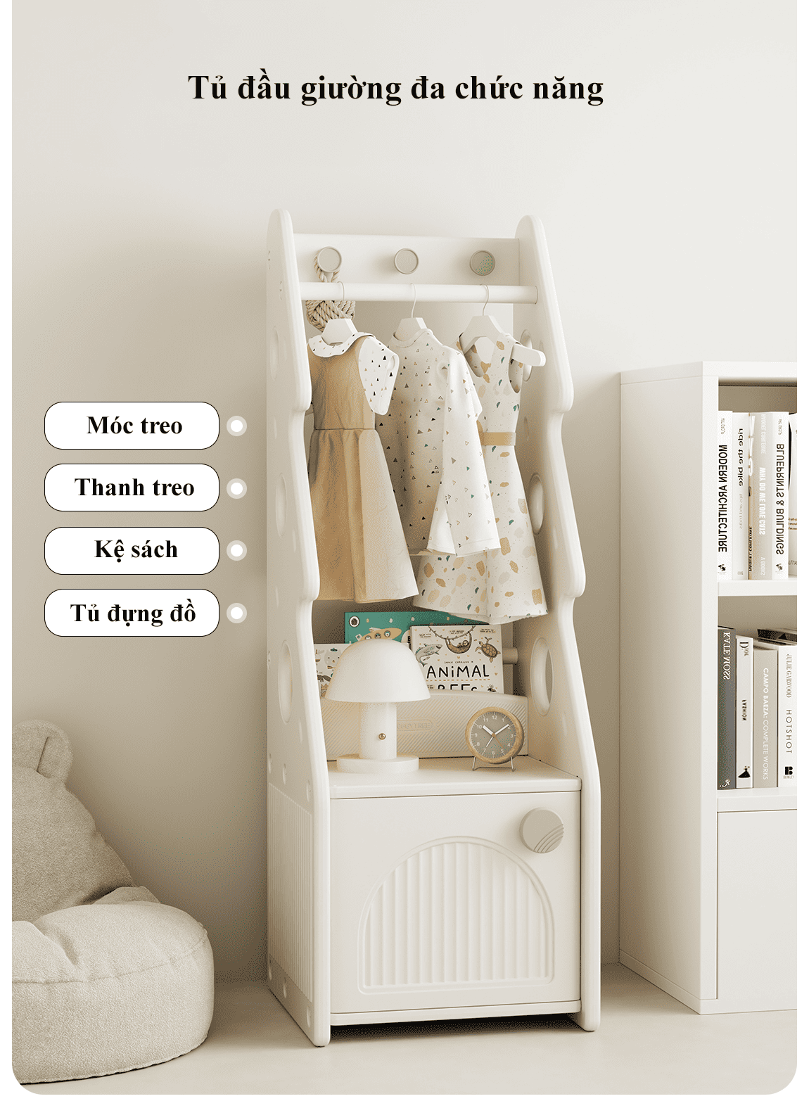 Tủ đầu giường kết hợp thanh treo quần áo mẫu Hobbytree