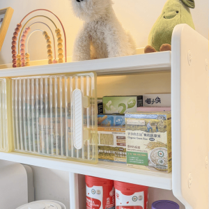 – Từng khay đựng được lắp vào kệ theo các đường rãnh giúp cho khay cố định, không bị dịch chuyển trên kệ khi đựng đồ, bé có thể tự thao tác lấy đồ một cách đơn giản.