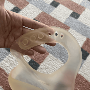 – Chất liệu: Nhựa silicone mềm mại, đúc nguyên khối 1 mảnh. Vật liệu gọn nhẹ, chống co dãn và đem lại sự thoải mái cho trẻ khi đeo.